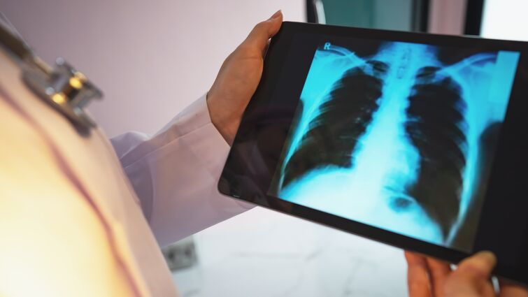 A doctor looking at an X-ray of the lungs